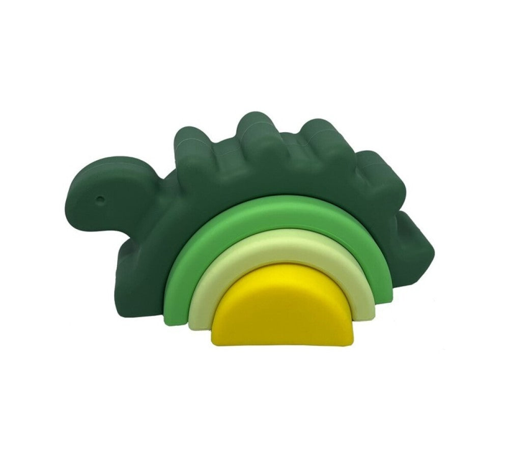 ¡Diversión y alivio en un solo juguete! Este original apilable de silicona con forma de dinosaurio es perfecto para que los más pequeños se entretengan construyendo mientras exploran texturas con total seguridad.
