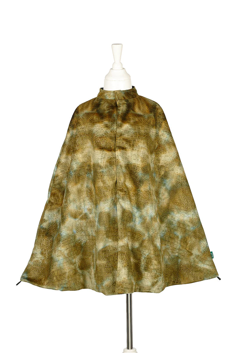 Capa reversible por un lado es un dinosaurio T-Rex y por el otro lado es negra con telas de araña plateadas.