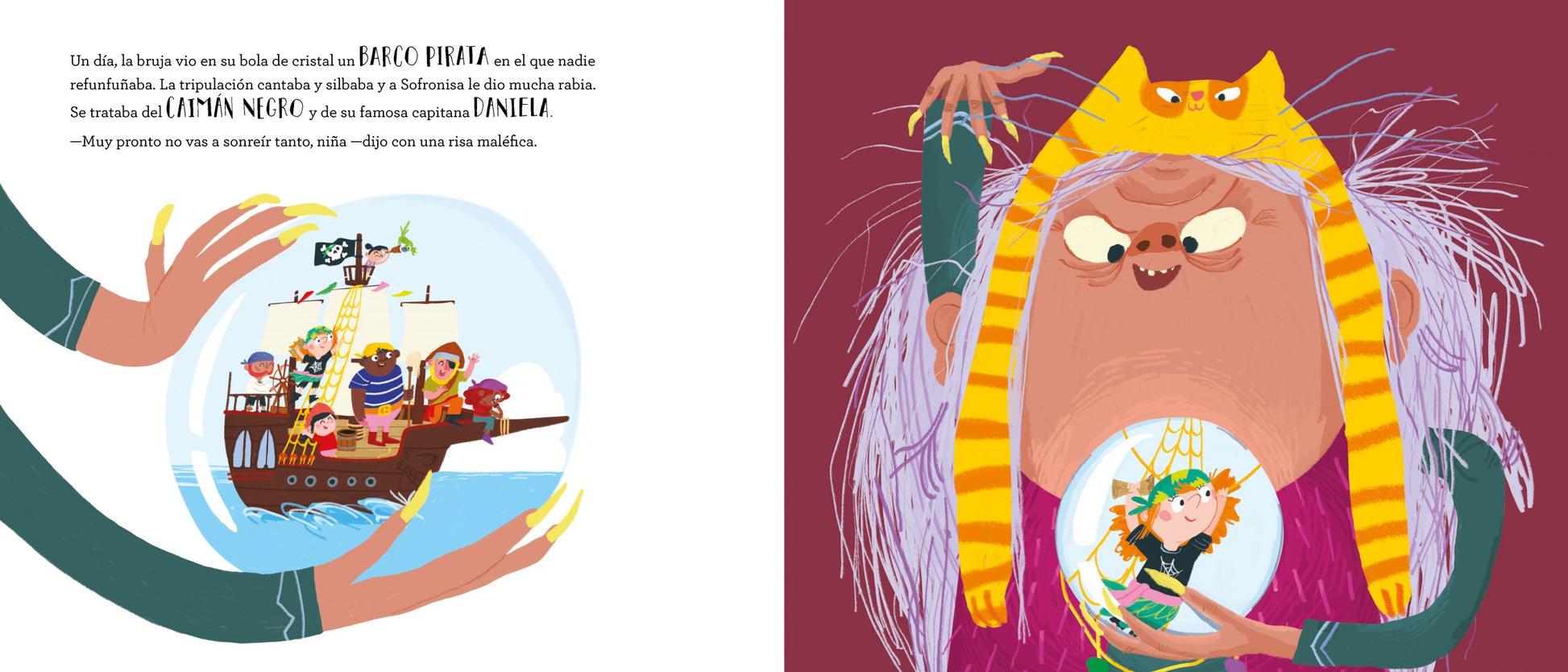 La malvada bruja Sofronisa vive en Isla Tenebrosa. Desde su cabaña, observa todo en su bola de cristal. No soporta las risas de los demás y cuando ve a alguien feliz le lanza hechizos para que todo le salga mal.