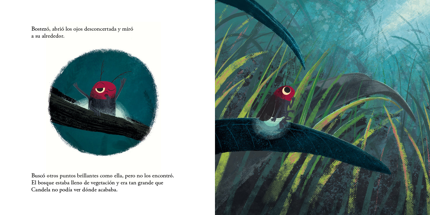 Esa misma noche, una niña sale de casa con su farol persiguiendo las pequeñas luces que iluminan el bosque. En la oscuridad se encontrarán y se harán amigas. ¿Ayudará la niña a Candela a entender quién es?