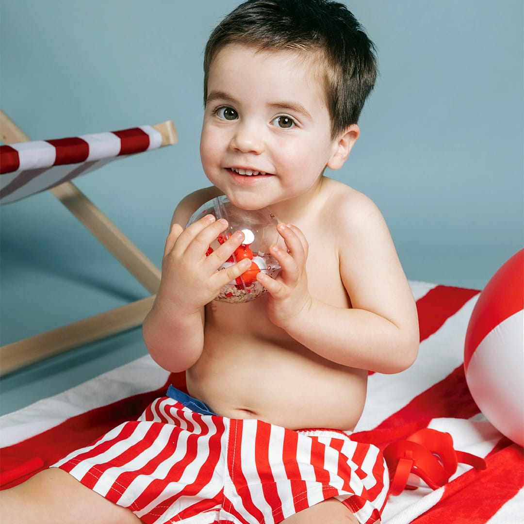 La botellas sensoriales despiertan la curiosidad, las estrellas y la luna nos llevan aún más lejos… ¡y ahora damos el salto al agua! Bolas sensoriales únicas, con un toque inconfundible, donde los cangrejos nadan junto a al bebé entre destellos mágicos.
