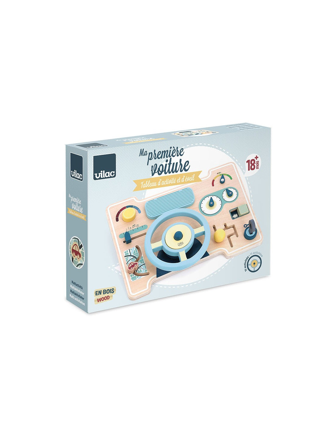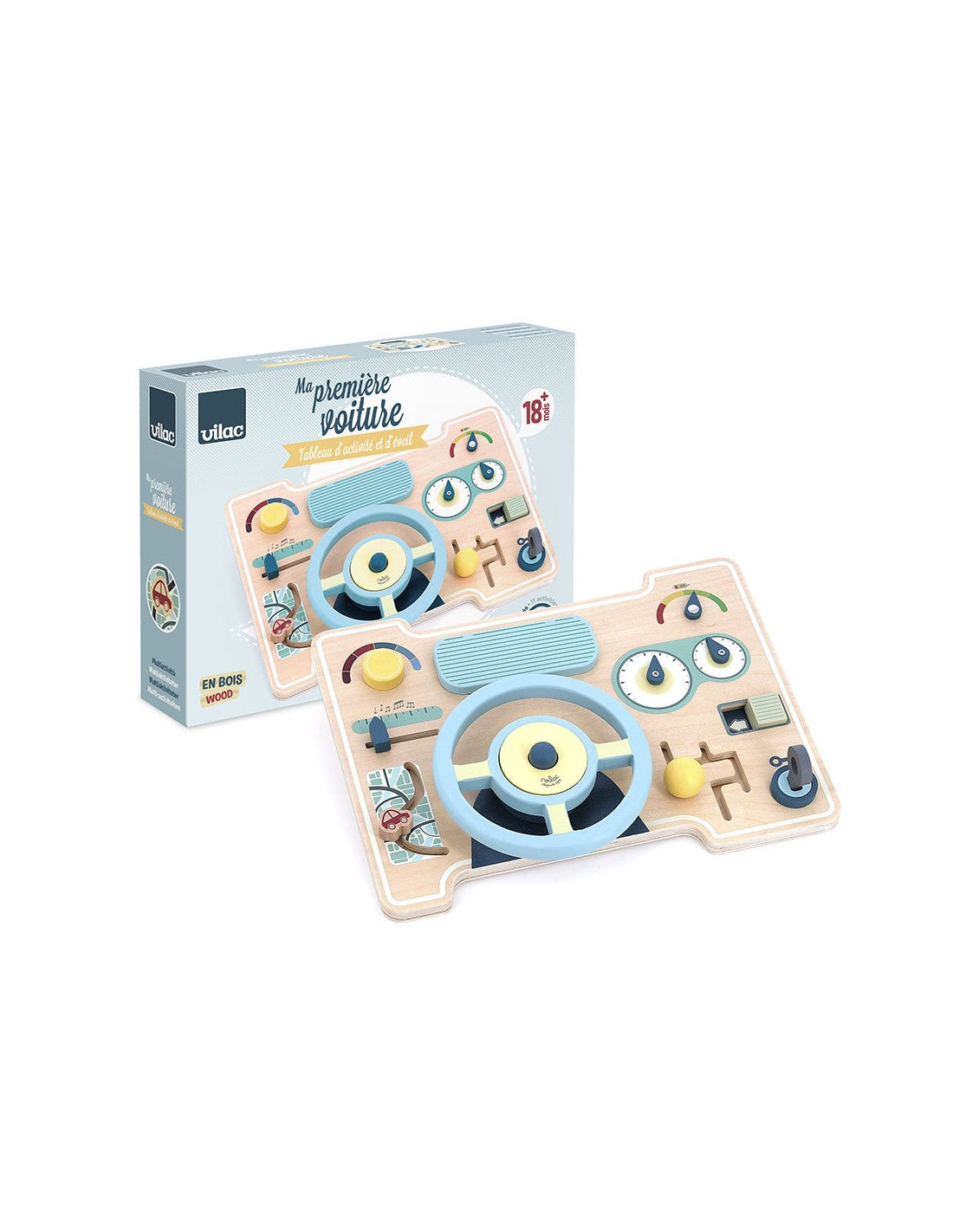 Descubre el tablero de actividades “Mi primer coche” de Vilac, un juguete de madera ideal para niños desde los 18 meses.
